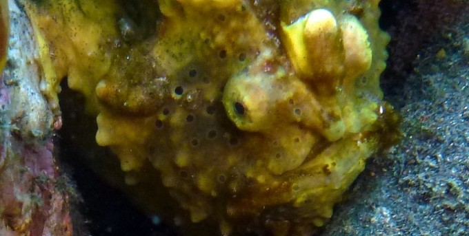 Entry point is in front of the ‘Relax Bali Resort’ right at the dead end of the road over a flight of stone steps. Sandy bottom at 5 meters with some boulders and a stone statue. On the right side (towards south-east) good coral growth and a chance for small critters. Frogfish ! Best diving between 5 and 20 meters.